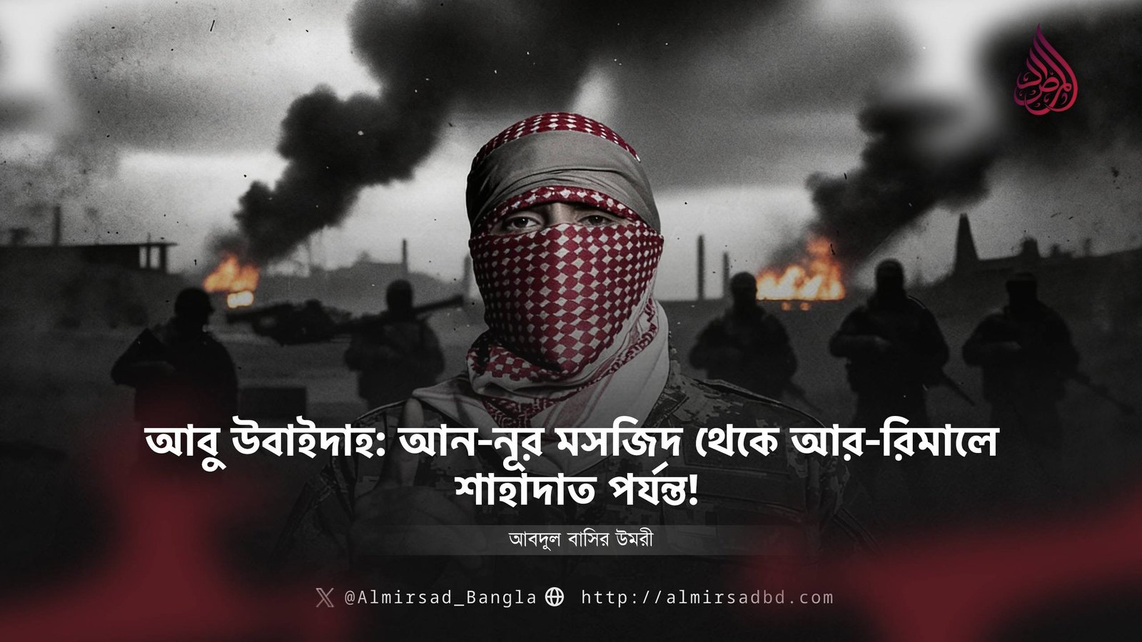 আবু উবাইদাহ ছিলেন সেই মুখোশধারী ব্যক্তি, যিনি ৭ই অক্টোবরের পর সংবাদ ও গণমাধ্যমের শিরোনামে পরিণত হয়েছিলেন। এমন এক নেপথ্যচারী মানুষ, যাঁর প্রতিটি শব্দ ছিল এই উম্মাহর ক্ষতবিক্ষত হৃদয়ের জন্য মলম আর শত্রুদের বক্ষের জন্য বিষাক্ত তীর। তিনি ঢাকা মুখে সামনে এসেছিলেন ঠিকই, কিন্তু উন্মোচন করে দিয়েছিলেন বহু মুখোশধারীর প্রকৃত রূপ।