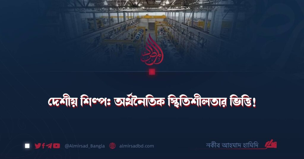 দেশীয় শিল্প কেবল একটি অর্থনৈতিক অবস্থান নয়, বরং এটি সামাজিক শৃঙ্খলা এবং সম্মিলিত দায়িত্ববোধেরও প্রতিফলন। ইসলামী চিন্তা অনুযায়ী, মুসলিম উম্মাহর উচিত তাদের প্রয়োজনীয়তা যতটা সম্ভব নিজস্ব সম্পদ ও সক্ষমতার মাধ্যমে পূরণ করা, যাতে মানুষের আত্মমর্যাদা সংরক্ষিত থাকে। যখন দেশে উৎপাদনের চাকা সচল থাকে, তখন জনগণকে জীবনধারণের মৌলিক প্রয়োজনে দ্বারে দ্বারে ঘুরতে হয় না; আর এটি অবশ্যই একটি প্রশংসনীয় অবস্থা।