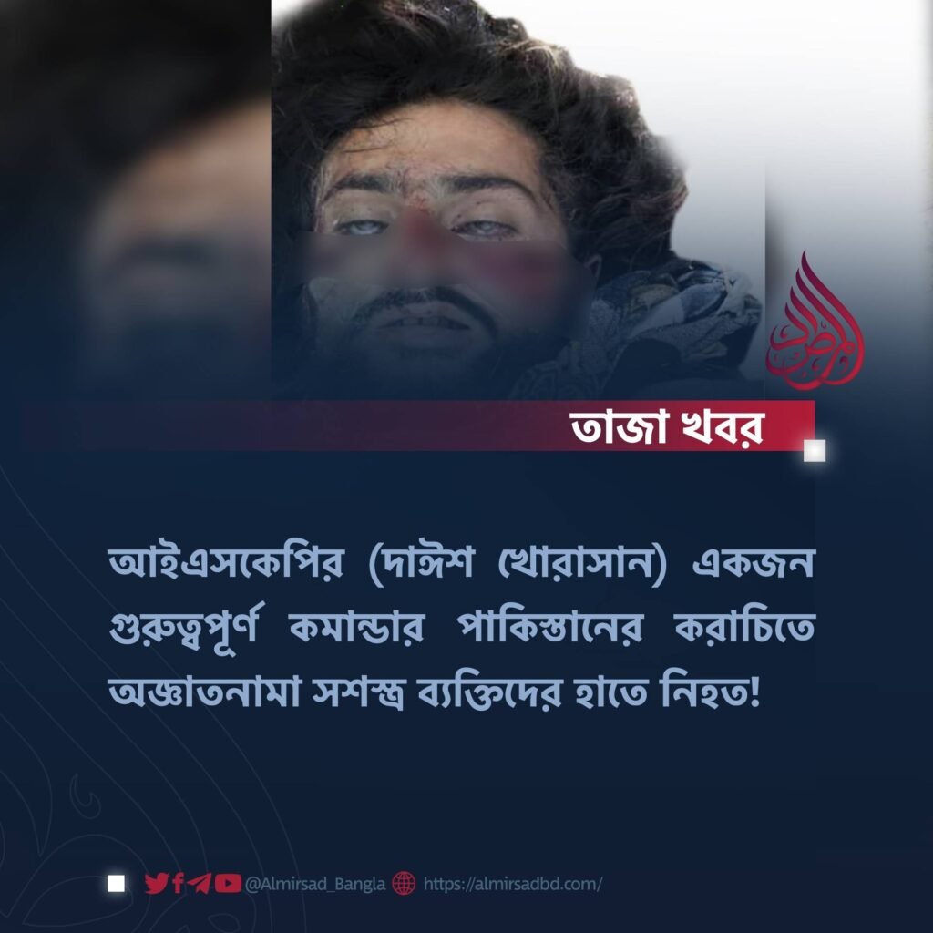 আইএসকেপির (দাঈশ খোরাসান) একজন গুরুত্বপূর্ণ কমান্ডার পাকিস্তানের করাচিতে অজ্ঞাতনামা সশস্ত্র ব্যক্তিদের হাতে নিহত!